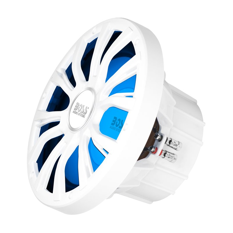 Marine speakerssuitable for installation on any type of boat. Resist without any problem to corrosion by salt water, even after installation the color remains unchanged, without undergoing mutations due to atmospheric agents. led light with remote control. SUB-WOOFER single speaker, max. 800 W (400W RMS), 4 ohm impedance, frequency response 44hz. Dim. mm. 268, mm diameter hole. 238 prof. mm. 116
