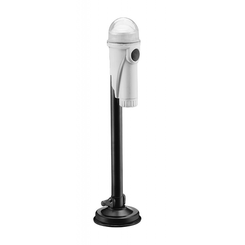 Navigation light White LED 360° ABS wateerproof for small boats and inflatable boats. Works with 3 batteries not included. Suction fixing, H. cm.38