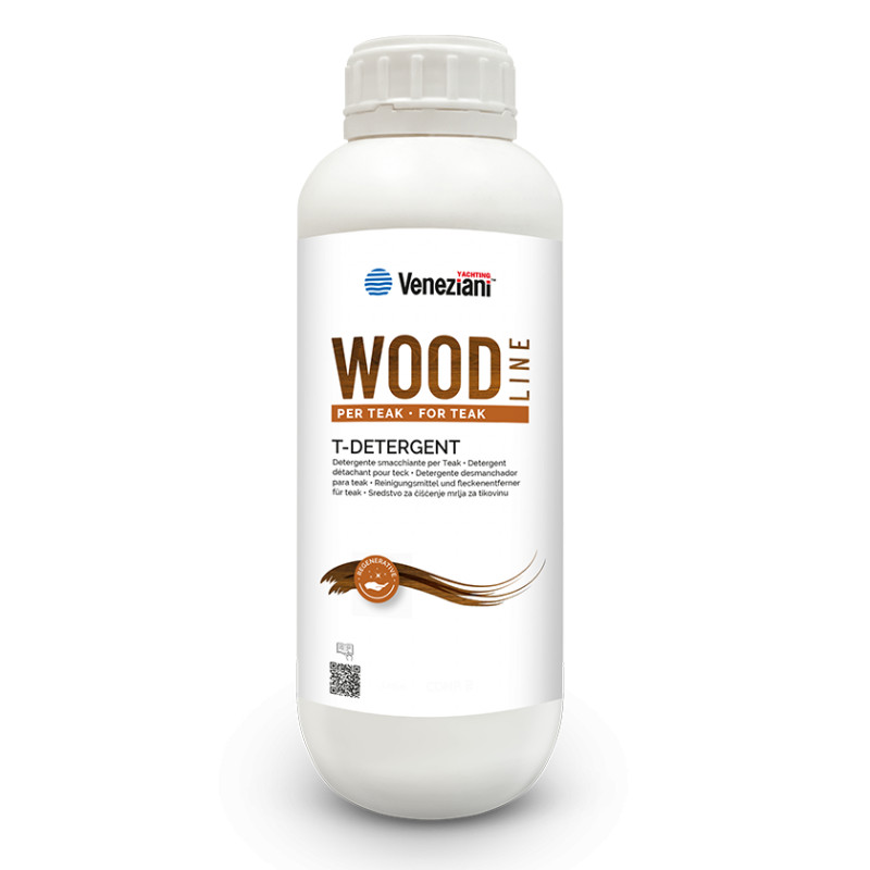 Detergent and stain remover for teakRemoves all kind of contaminations from wood. The pH of onlyslightly alkaline, therefore it cleans thoroughly, removing the soil butleaving the ‘oily’ content of the wood unharmed. Colourless. Bottle lt 1