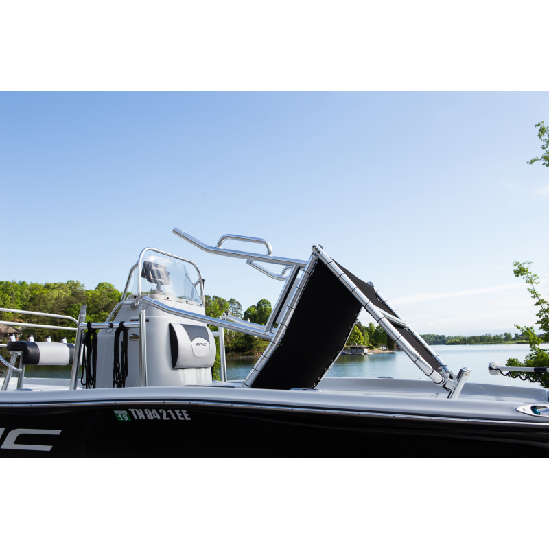 in polished and anodized aluminum, it fits any boat with a 60 or 130 cm wide center consolle. Integrated grab handles provide a comfortable grip. Side support bars for added strength. It folds up instantly without tools.Height 205 cm, Length 203 cm, Width 152 cm, Handles Ø 3.2 cm, Tubular Ø 4.8 cm, Weight 45 kg.The shading cover must be ordered separately.ARTICLES ONLY ON ORDER.