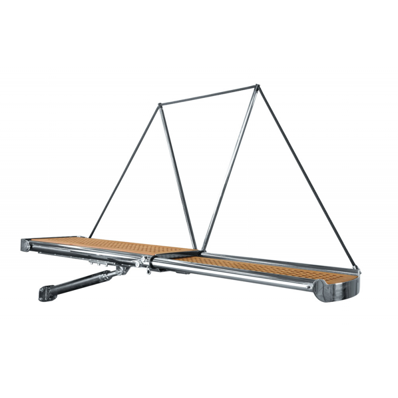 Telescopic hydraulic gangways SPICA mirror-polished AISI 316 stainless steel with circular structure. Railings with automatic lowering device, interchangable right/left to be mounted on both sides of the gangway. Real teak floorboard. Electronic control unit with simple “PLUG & PLAY” wiring. Possibility to modify the gangway fulcrum position for an optimal positioning of the lifting piston. The 12- or 24-volt gangway (to be specified) is equipped with:- Hydraulic control unit with electrovalve- High-pressure hydraulic piping with AISI 316 S.S. fittings- Electronic control unit- Built-in control panel- App for remote control- Stanchions- Stern plate- Instructions for installation and use.