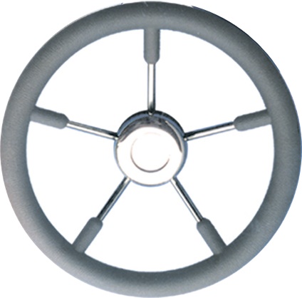 Volante de 5 raios em AÇO INOXIDÁVEL com um revestimento em poliuretano. Resistente aos raios ultravioleta.