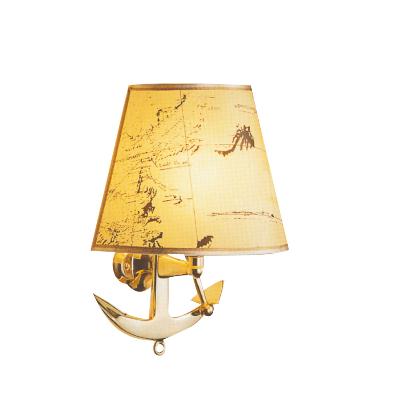 Wall lamp polished brass wall lamp with anchor and printed parchment shade.